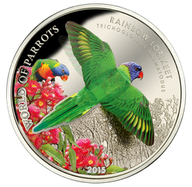 Sterling Silver 3D Coin - Rainbow Lorikeet
