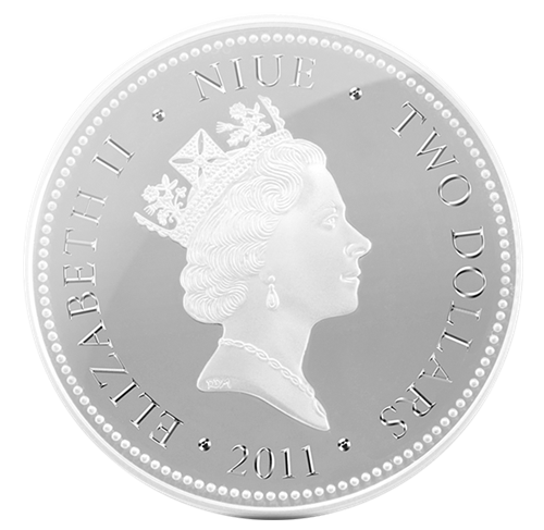 The obverse of the coin features The Raphael Maklouf effigy of Her Majesty the Queen Elizabeth II sovereign of the commonwealth of Niue.