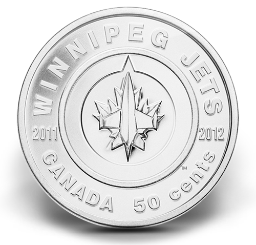 This unique 50-cents coin depicts the New Winnipeg Jets team to join the NHL.