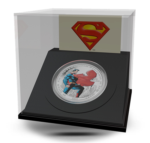 A faithful recreation of one of the most iconic Superman images in modern times, the Royal Canadian Mint, OfficialLicensee of DC Comics, presents this fine silver Superman coin in full colour, featuring The Man of Tomorrow standing guard over the city of Metropolis.