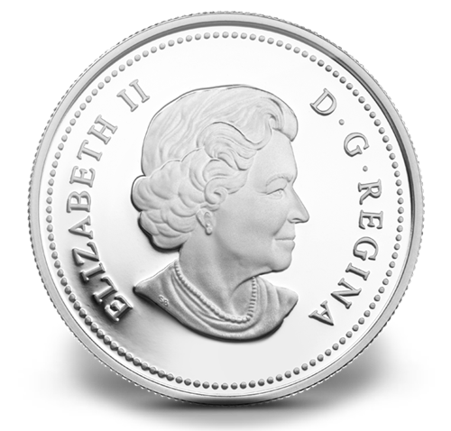 Your coin features an adaptation of Franz Johnston’s painting, The Guardian of the Gorge. In this detail of the painting, we see massive outcroppings of granite acting as guard and gateway toa vast river canyon. The figurative becomes literalas one notices the figure of a crouching man emergefrom the rock and at the crest of the cliff (not seen here), the face of the elderly guardian watches over the vast chasm. The outer frame on the reverse side features the words “CANADA” and “FRANZ JOHNSTON”along with the date “2013” and the face value of “20 DOLLARS.”