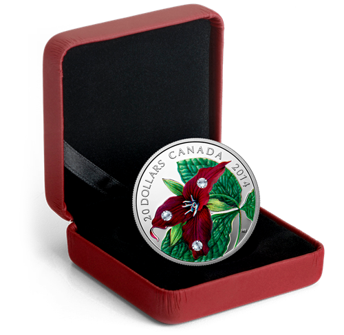 In spring, each plant produces a single flower,and picking it can be fatal, or hinder the plant's ability to bloom for several years. The red trillium is a slow-growing plant that can live for 30 years, but may take as many as 15 to bloom; this stunning coin delivers a crystal-enhanced flower to enthral admirers for generations to come.