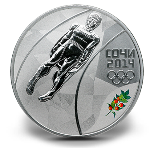 1 oz. Sterling Silver 3-Roubles Coin – Luge : Sochi 2014 Winter Olympics