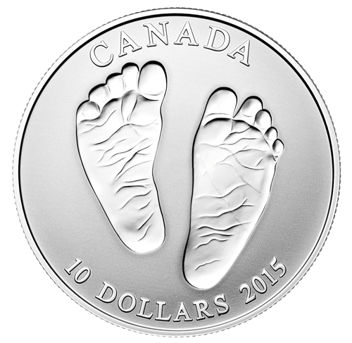 • Your coin features a ½ oz fine silver coin, with a reverse proof finish, of a baby's feet to commemorate the birth of a new baby.