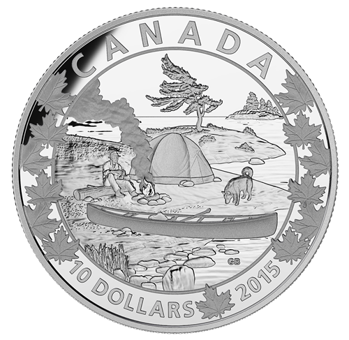 • This fourth coin in the Royal Canadian Mint’s Canoe Across Canada series, brings us the Serene Scene design featuring an outdoorsman and his dog camping in Ontario’s Georgian Bay Islands; an original work of art by Canadian artist Greg Banning.