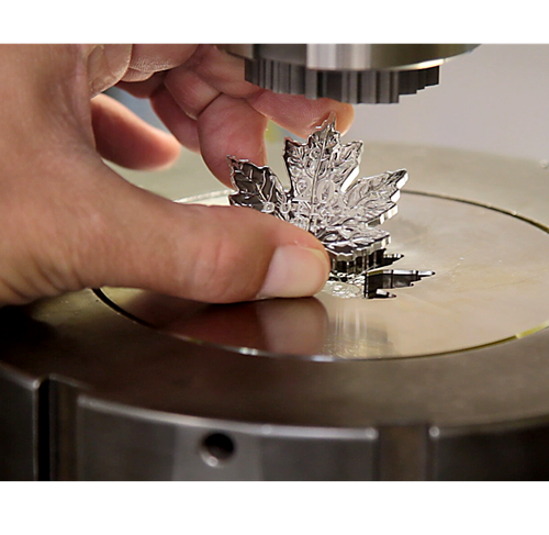 Your coin recreates the familiar shape of a maple leaf—specifically that of the silver maple (Acer saccharinum) species. Here, the coin's unique shape accentuates the palmate leaf's beautifully serrated edges. An intricate series of deep veins are rendered with finely detailed engraving, as they run through each of the leaf's five pointed, tapering lobes. Different finishes bring added dimension to the design, enhancing the engraving and lending the leaf a bright natural appearance.