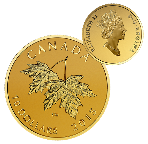 Pure Gold Coin – Maple Leaves with Queen Elizabeth II Effigy from 1990 – Mintage: 1,000 (2015)