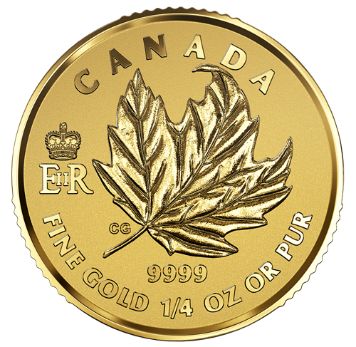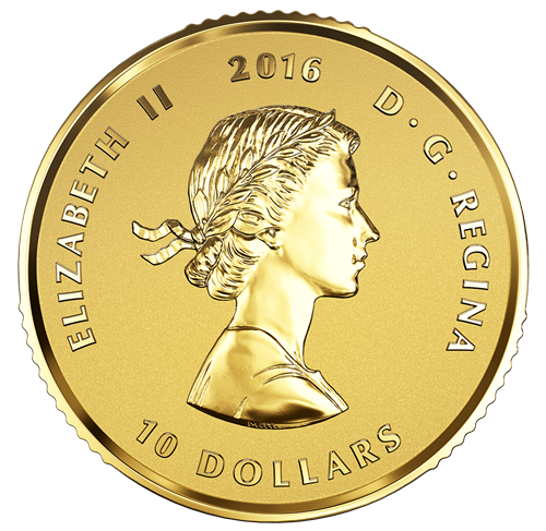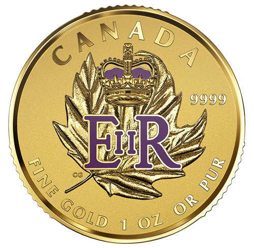 All four coins feature a reverse design by Canadian artist Celia Godkin that showcases an engraved renditionof Canada’s beloved symbol, the maple leaf, as it is gently carried in the air by a soft autumn breeze. Underscoring Her Majesty Queen Elizabeth II’s role as Canada’s head ofstate, the Royal Cypher EIIR appears alongside the leaf and the word “CANADA”; the emblem is particularly resplendent on the 1 oz coin, where the addition of enameladds a regal purple colour to the lettering and rendition of the St. Edward’s Crown. The obverse features the year “2016” along with the purity and each coin’s weight. In celebration of Her Majesty’s long and remarkable reign, different profile portraits arealso featured on the obverse: the 1 oz. coin features a 1952 profile portrait of Her Majesty wearing the Imperial State Crown; the ¼ oz. coin features the effigy that first appeared on Canadian circulation coins in 1953, as designed by Mary Gillick; the 1/10 oz. coin features the 1965 effigy of Her Majestyby Arnold Machin; and the 1/20 oz. coin features the first effigy of Her Majesty to be designed by a Canadian, Dora de Pédery-Hunt. The coins are presented in a red lacquer case with a custom outer box showing an image of Her Majesty on her Coronation day,wearing the Imperial State Crown as shown on the 1oz. coin.