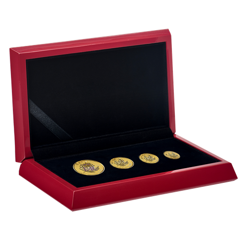 Your coins are encapsulated and presented in a Royal CanadianMint-branded red lacquer with a graphic beauty box.