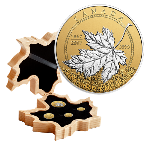 As Canada marks the 150th anniversary of Confederation, the Royal Canadian Mint is proud to celebrate our nation's incredible journey with this commemorative set of gold maple leaf fractional coins beautifully enhanced with platinum plating—our first ever!