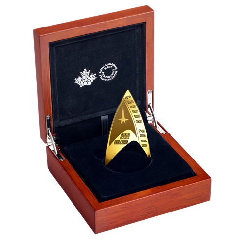 Detailed engraving and contrasting finishing instill this unusually shaped coin with an inspiring, nostalgic feel. Its arrowhead shape mimics that of theiconic Delta Shield Insignia, which was worn by the crew of the U.S.S. Enterprise and became the identifying emblem of Starfleet.