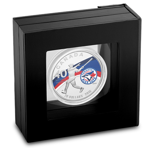 Designed by Canadian artist Joel Kimmel, your coin combines skilful engraving with the application of vibrant colour in a dynamic design that celebrates the history of the Toronto Blue JaysTM. A wave comprised of the team's official colours conveys energy and motion in the background, which provides a colourful contrast to the silhouette of a baseball player who has just hit the ball—a reminder of the many homeruns throughout the Jays' history. Next to the player is a large engraved "40", which commemorates the 40th season of play since Toronto was granted its MLB franchise in 1976. To the right of the player is the official logo of the Toronto Blue JaysTM.