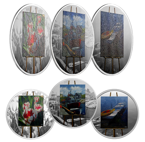 - NEW! TWO COLOUR TECHNOLOGIES MAKE THEIR DEBUT! Masterfully combined for a true-to-life viewing experience, each of your coins uses texturized colour to raise some of the elements (like the easel-mounted canvas) and provide a sense of depth to the design, while canvas effect adds life-like texture to the painting!