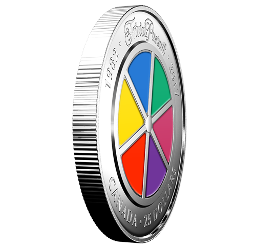Your coin design pays tribute to the enduring popularity of Trivial Pursuit game, its Canadian origins, and its 35-year history as one of the top-selling board games in the world. The piedfort offers nearly double the thickness of traditional coins,allowing for high-relief engraving to capture the look and feel of a player's rounded game piece,as viewed from above. The raised elements mimic the appearance of the six individual wedges that complete this game-winning piece, while the application of coloured enamel recreates the iconic colours of each question category: History (yellow), Geography (blue), Entertainment (pink), Arts & Literature (purple), Science & Nature (green), andSports & Leisure (orange). The reverse also features the iconic "TRIVIAL PURSUIT" game logo engraved between the commemorative dates "1982" and "2017", along with the word "CANADA" and the face value "25DOLLARS". The obverse features the effigy of Her Majesty Queen Elizabeth II by Susanna Blunt.