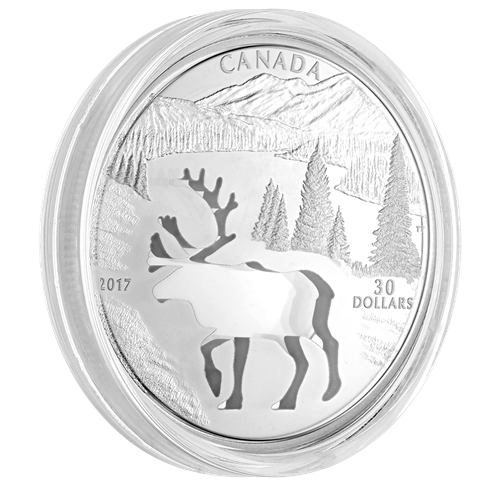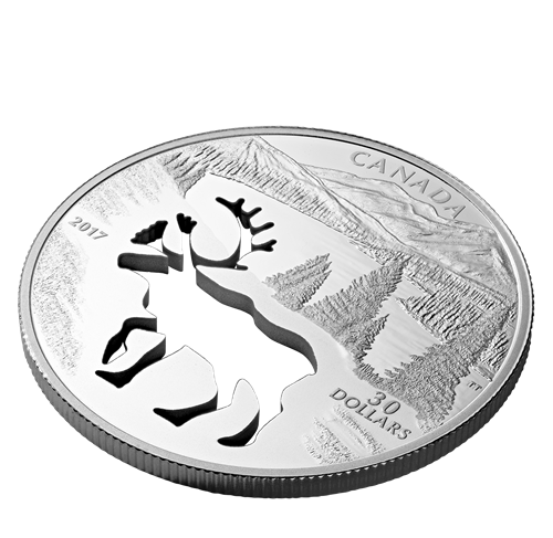 1.7 oz. Pure Silver Coin - Endangered Animal Cutout: Woodland Caribou - Mintage: 5,500 (2017)