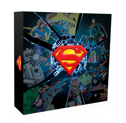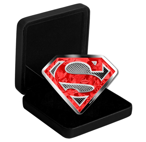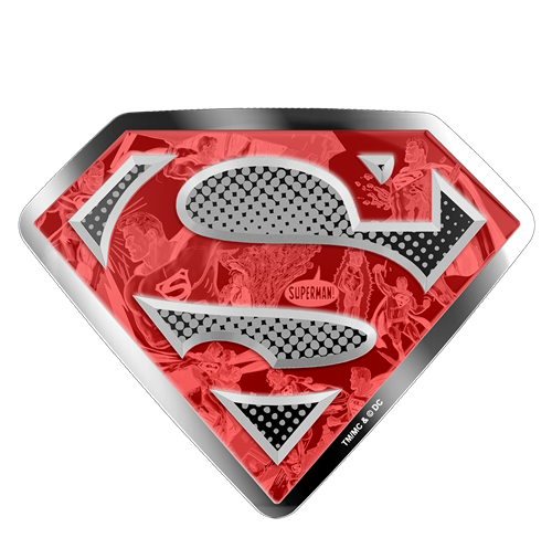 It is the ultimate re-creation of a near-universal symbol for hope: Superman's iconic emblem leaps off the pages and into your collection with this S-Shield-shaped coin! The image is unmistakable, thanks to the application of red enamel along the "S". Take a closer look: the bold colour is transparent, revealing a collageof comic book action scenes that chart Superman's evolution through the ages, and all engraved inincredible detail!