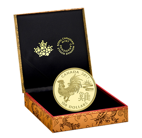 According to the Chinese zodiac, the year 2017 is ruled by the Rooster. The Rooster loves to be the centre of attention; witty and self-assured, he or shecan talk about anything! A natural performer, he or she does amazingly well in any career that puts him or her in the public eye. The Rooster is astute, organized and decisive—put him or her in charge, and your life and finances will run like clockwork! This 18-karat gold coin commemorates 2017 asthe Lunar Year of the Rooster, and celebrates all who are born under its sign.