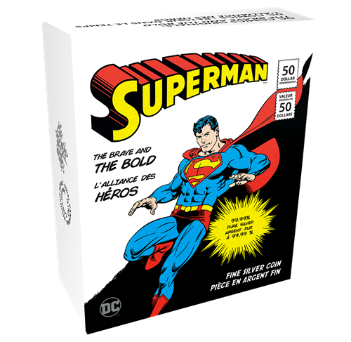 Through a layered approach, your coin's design re-visits the artistry of retro DC Comics. In the background, laser engraving re-creates all the details, shadows, nuances and complexities that are characteristic to Bronze Age comics. Each of the re-created panels hint at the origin stories of Superman, Batman, and Wonder Woman, and are resplendentin reverse gold plating that adds a golden gleam throughout the reverse—save for the centre image of Superman. Engraved in outstanding detail, Superman shines bright in silver as the Super Hero bursts through the page, revealing a laser halftone pattern behind it. The obverse features the effigy of Her Majesty Queen Elizabeth II by Susanna Blunt.