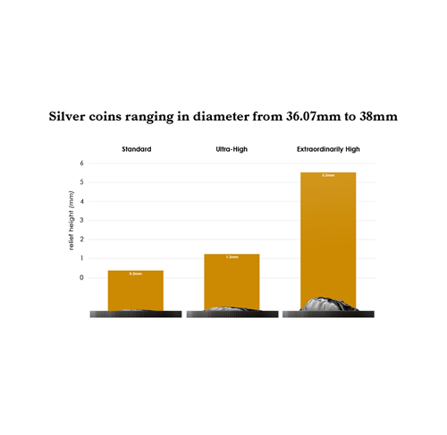 - The MINT'S SECOND REPOUSSÉ-INSPIRED, an ancient technique that creates an astounding relief that rises an incredible 5mm from the surface of the coin!