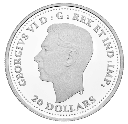 - EFFIGY OF KING GEORGE VI: Like all Canadian coinage issued throughout the Second World War, the obverse features the effigy of King George VI by T. H. Paget.