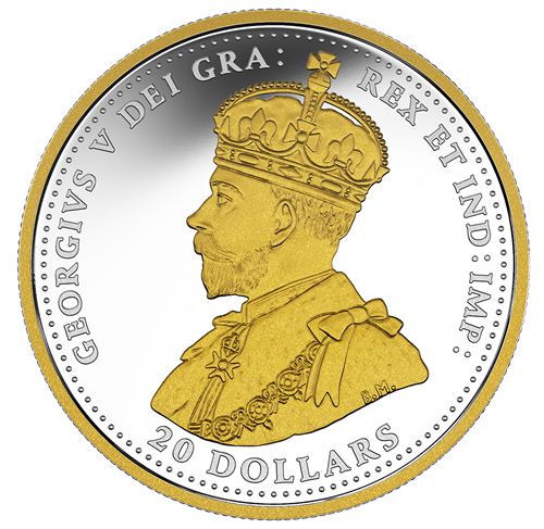 - FOR KING AND COUNTRY: Selective gold plating also highlights the effigy of King George V on the obverse, which largely resembles that of all Canadian coins issued during theFirst World War.