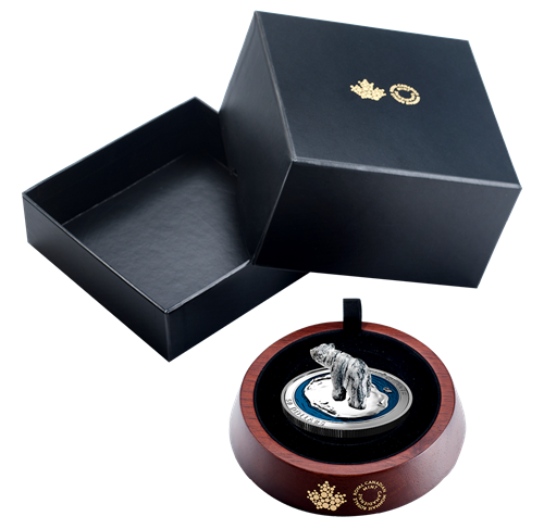Your coin is encapsulated and presented in aRoyal Canadian Mint-branded wooden circular base with a black beauty box.