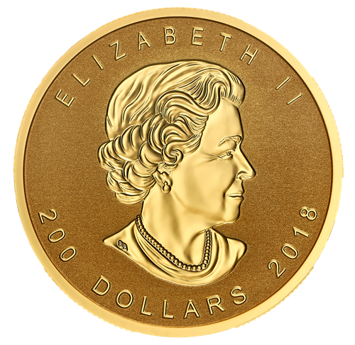 Your 99.999% pure gold 1-ounce coin has a diameter of 30 millimetres and features Walter Ott’s iconicmaple leaf design from the original Silver Maple Leaf bullion coin release in 1988. The realistic sugarmaple leaf is incuse-struck into the surface of thecoin. The reverse features the words “CANADA” and “FINE GOLD 1 OZ OR PUR” as well as the highest purity standard of“99999”. The obverse features the effigy of Her Majesty Queen Elizabeth II by Susanna Blunt. Her Majesty’s image is incuse-struck. The obverse features the date “2018” and the face value of “200 DOLLARS.” The coin also bears commemorative edge lettering with the number “30” flanked on both sides by a maple leaf, and selective platinum plating on the iconic maple leaf.