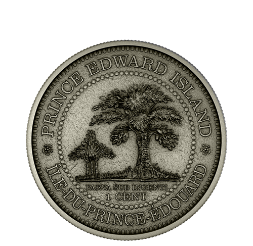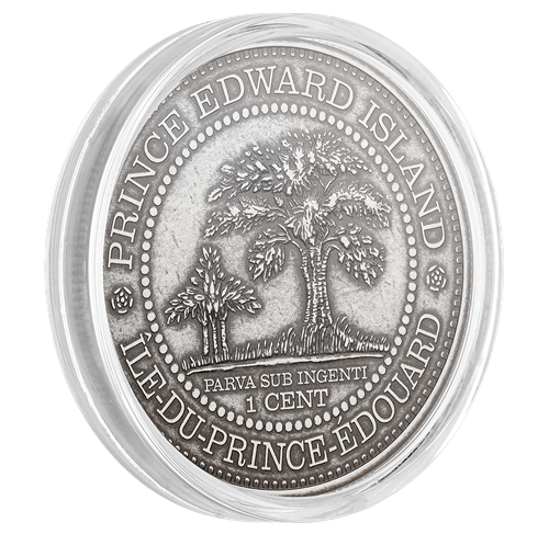 Prince Edward Island was the last to adopta new decimal currency system. Released in 1872, the bronze cent re-created in this set was the only decimal coin ever struck for Prince Edward Island, which joined Confederation in 1873 but continued to issue this provincial currency until at least 1879. L.C. Wyon (based on a model by G. Hill) designed the reverse based on the provincial great seal. And for reasons unknown, the coin did not include the “H” mint mark of the Heaton Mint, which was contracted to strike the coins.