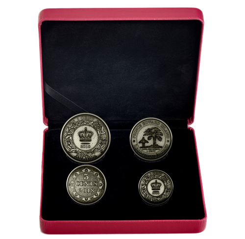 Enhanced by an antique finish, each of your coin’sreverse is a reproduction of a pre-Confederation circulation coin from one of the four provinces of Atlantic Canada. All four bear reverse designs by Leonard Charles Wyon, and are based on decimal coins authorized by the colonial governments between 1861 and 1871. In addition, each of your coin’s obverse features the effigy of Her Majesty Queen Elizabeth II by Susanna Blunt.