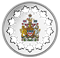 - A FIRST! Thirteen cut-out maple leaves form a circle around the current Arms of Canada!