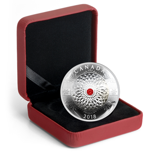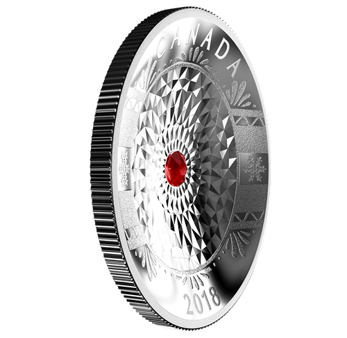 Canadian artist Calder Moore recreated the incredible beauty of a vintage tree ornament to remarkable effect on your coin. A circular design of chiselled indentations dominates the centre of the coin, with a holiday-red Swarovski® crystalglistening in the middle. Classic elements such as frosted stripes, snowflakes and delicately curved lines, dots and petals, complete the design.