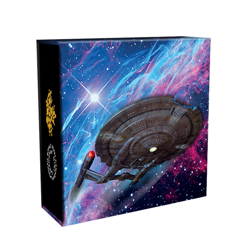 - A NOD TO THE FANS! The engraved frame on your coin includes two special design flourishes: the navigational deflector!