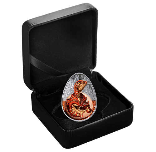 - A FIRST! Your coin’s egg-like shape is the perfect fit for a dinosaur egg theme, and is our first egg-shaped dinosaur coin!