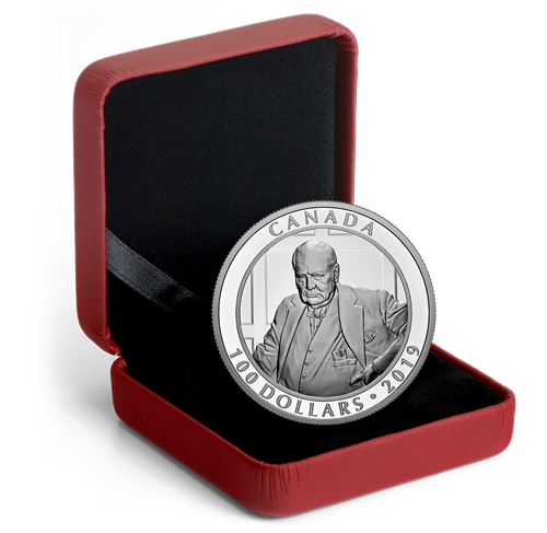 The reverse design features a reproduction of The RoaringLion by Armenian-Canadian photographer Yousuf Karsh, C.C. (1908-2002). The original black-and-white photograph is the most famous portrait of Sir Winston Churchill (1874-1965). It was taken on December 30, 1941, in the House of Commons during the British prime minister’s visit to Ottawa. The obverse features the effigy of King George VI by T. H. Paget.
