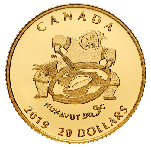 To mark the 20th anniversary of Nunavut’s entry into Confederation, we’ve brought back the design that graced our $2 circulation coin in 1999—the year that changed the face of Canada. The commemorative piece is precision-crafted from Nunavut-sourced gold. Only the second coin of its kind, it wasstruck on an innovative thin blank that offers the affordable gold content of a 1/10 oz. coin, but witha 25% larger diameter.