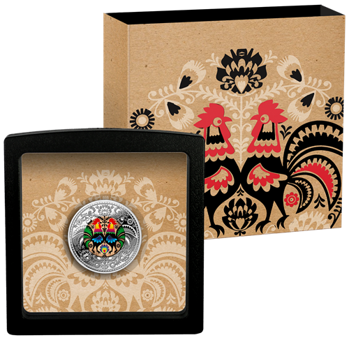 The most popular motifs of Polish folk culture meet on this unique coin. Floral patterns, well-known from the traditional cut-outs, surround the image of two roosters, which symbolize fertility, creativity,and prosperity. This unique coin is the first from the remarkable Folklore series. It makes an excellent idea for a business gift symbolizing Polish culture. And, its vibrant design will also enchant folk art lovers!