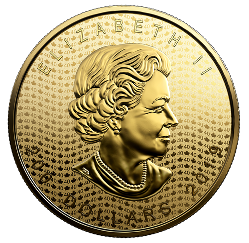 - MICRO-ENGRAVED USING LASER TECHNOLOGY! The recurring number “40”and a maple leaf shape form a light-refracting pattern that adds an alluring shine to the reverse—just like the enhanced security features found on the bullion coin.