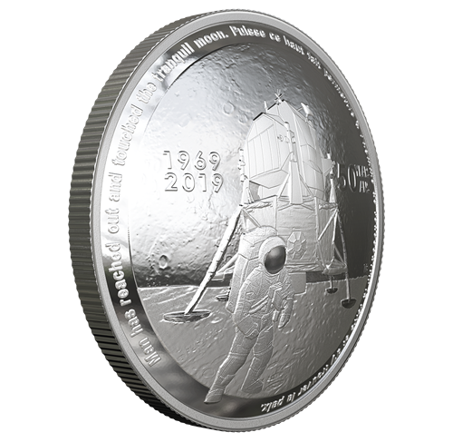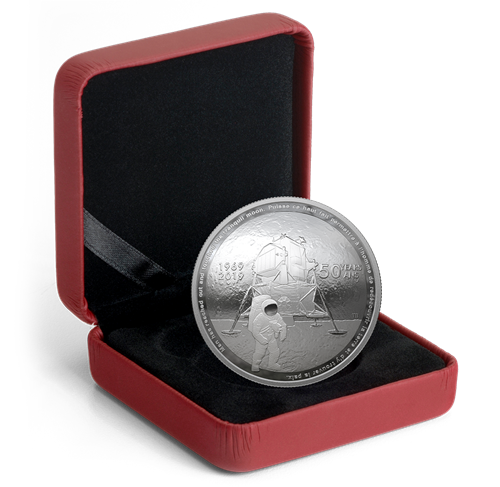 Your 99.99% pure silver coin celebrates the 50th anniversary of the Apollo 11 moon landing! Order today.