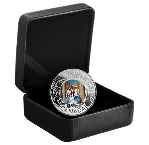 March brings the promise of spring and the start of the sweetest time of year: maple syrup season. The third coin in the Celebrating Canadian Fun and Festivities series samples the sugar bush experience in eastern and central Canada, where visitors enjoy sweet treats and learn about a syrup-making process that originated with the Indigenous peoples of Canada.