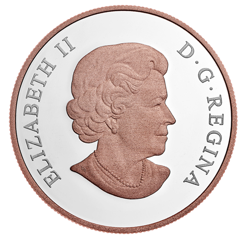 The reverse design by Canadian artist Sylvie Daigneault is a beautiful celebration of love and an artistic ode to marriage–an occasion when two individualsmark their commitment to one another. Fittingly, two different design elements—hearts and arabesque-style scrolls—come together in one intricately engraved pattern that forms a large heart shape. Also engraved on the reverse is the year "2020", the word "CANADA" and the face value "20 DOLLARS". The obverse features a pink gold-plated effigy of Her Majesty Queen Elizabeth II by Susanna Blunt.