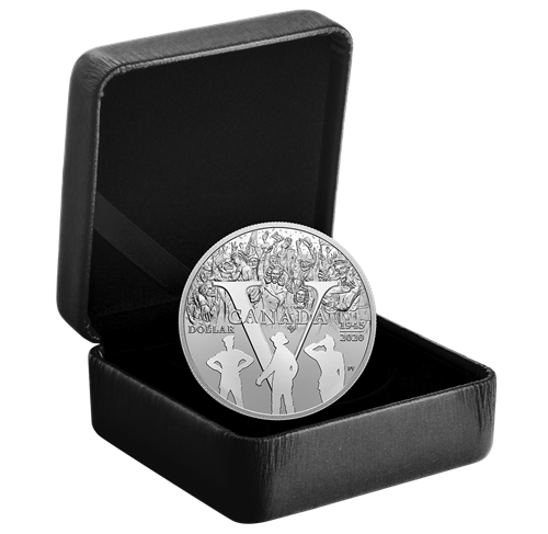 Our 2020 75th Anniversary of Victory in Europe (V-E) Day collection is the multi-part story of Canada in 1945—a story of wartime contributions and a peacetime legacy. It begins on the 2020 Proof Dollar, where the design strikes a balance between celebration and remembrance and sets the tone for coins to come. Our own past is present, with the 1945 Victory nickel servingas the inspiration for design elements that are thehallmarks of this collection—from the Victory privymark to the holographic decal on each beauty box. This is our way of paying tribute to all who contributed to the fight for freedom, wherever Canada was needed.