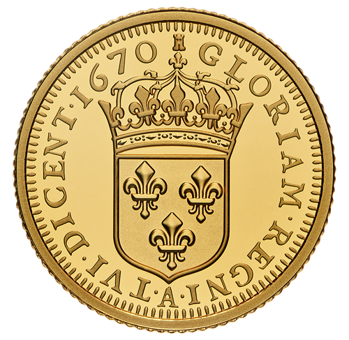 - EVERY DETAIL FROM THE 1670 COIN HAS BEEN CAREFULLY REPLICATED: For historical accuracy, the reverse includes the original "A" (Paris Mint) mint mark beneath the shield and at thetop, the rook engraver mark of Jean-Baptiste Dufour.