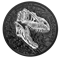 Designed by Canadian paleoartist Julius Csotonyi, the reverse features the fossilized skull of Thanatotheristes degrootorum, a tyrannosaur species recently discovered in Canada. Beneath the black rhodium plating, the engraved rock texture represents the formation in which the fossil fragments were found. The obverse features the effigy of Her Majesty Queen Elizabeth II by Susanna Blunt.