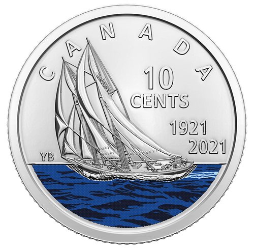 This year (2021) marks the 100th anniversary of the launch of Bluenose, the pride of Nova Scotia and a Canadian icon! The centennial is commemorated on Canada’s 2021 10-cent circulation coins, which are featured here.