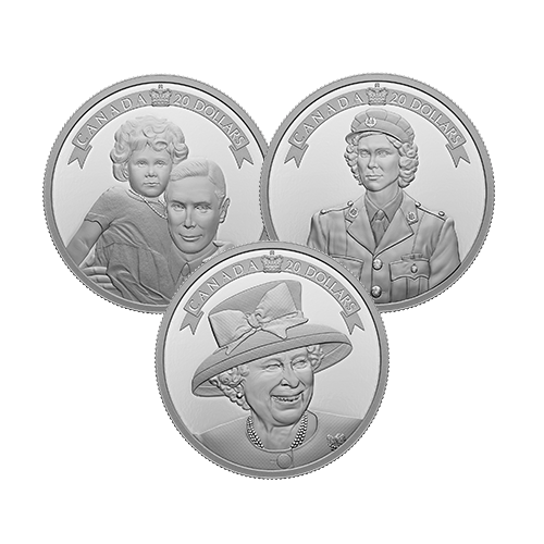This fine silver set is a three-part, photo-inspired celebration of an extraordinary life and reign. Packaged in an informative presentation folder, each coin commemorates a different chapter in the life story of Queen Elizabeth II, from princess to long-reigning queen. And together as one set, these coins will forever preserve the legacy of the beloved Queen of Canada.