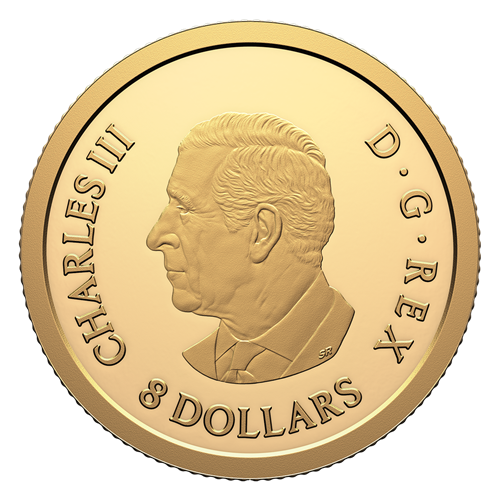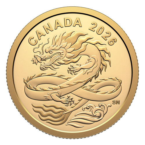 The reverse design by Canadian artist Simon Ng features a stylized depiction of a dragon, the benevolent creature of Chinese mythology. Paired with waves that usher in prosperity and joy, the dragon forms the shape of the lucky number 8. The obverse features the effigy of His Majesty King Charles III by Canadian artist Steven Rosati.