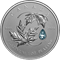 Set against a matte field, the reverse design features two sugar maple (Acer saccharum) leaves floating in the wind and positioned in a way that suggests a circular motion. The engraved design is embellished with a 0.23-carat, AAA-grade, pear-shaped, rose-cut aquamarine gemstone, which stands in for a sparkling water droplet. The obverse features the effigy of His Majesty King Charles III by Canadian artist Steven Rosati.
