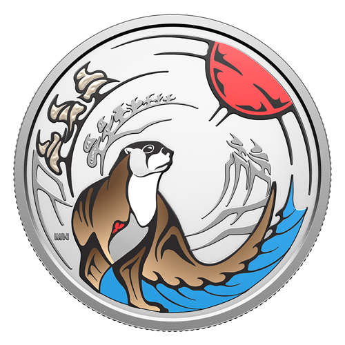 Enhanced with colour, this ¾ oz. 99.99% pure silver coin honours Nigig’s special gifts: the ability to weave play into life’s serious work; and as a bringer of kinship, to keep hearts open and communities whole.