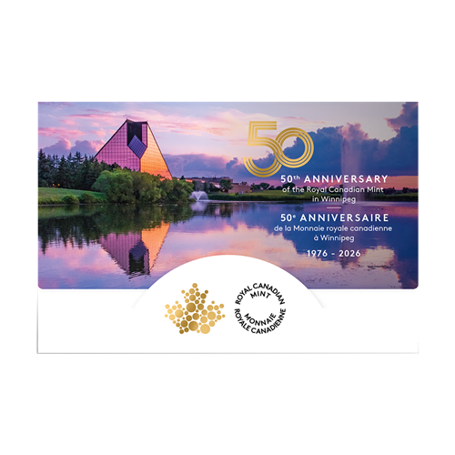 All six coins come sealed and packaged in a folder featuring visuals that represent the 50ᵗʰ anniversary of the Royal Canadian Mint’s Winnipeg facility. A certificate of authenticity and detailed coin specifications are incorporated into the folder and presented in an easy-to-read format.