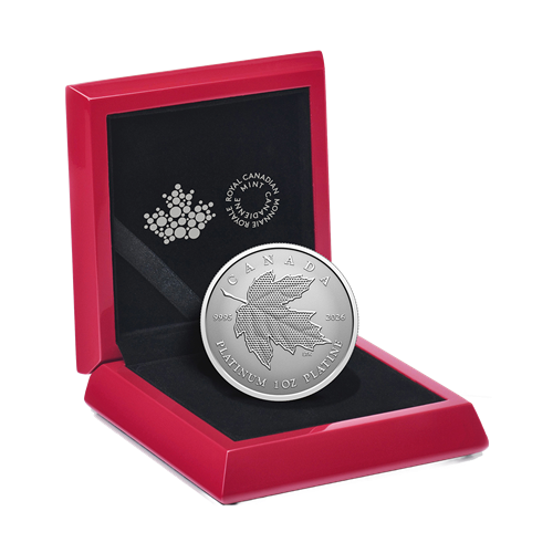Expertly engraved in rare 99.95% pure platinum, this red maple (Acer rubrum) leaf embodies a refined expression of pride in the intricate beauty of nature. The coin’s reverse proof finish directs all the light onto the leaf’s form, where hundreds of precisely cut micro-mirrors create a pulsating effect. The light subtly shifts in a gentle rhythm, lending the piece a sense of movement and vitality—as if echoing a joyous heartbeat.